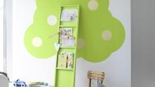 Ta naturen med inn med dette koselige tremotivet til barnerommet. Store sirkler kan brukes til å lage treformen, og de mindre sirklene kan være frukt eller blomster. Dette er en enkel og kreativ måte å friske opp barneromsveggene på med litt farge.
