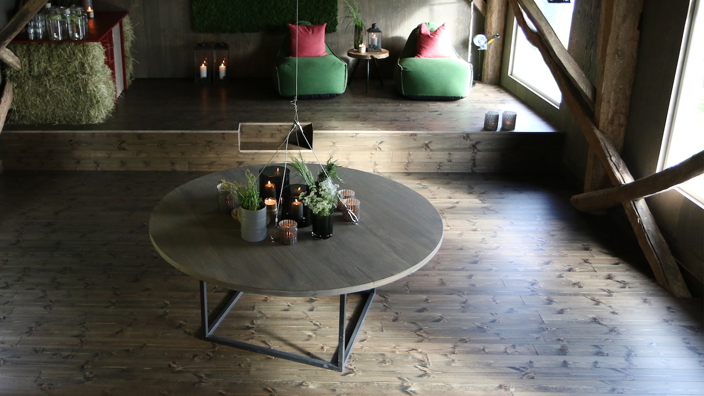 En gammel låve ble pusset opp til et stort og lekkert aktivtetsrom for hele familien i Bauge.