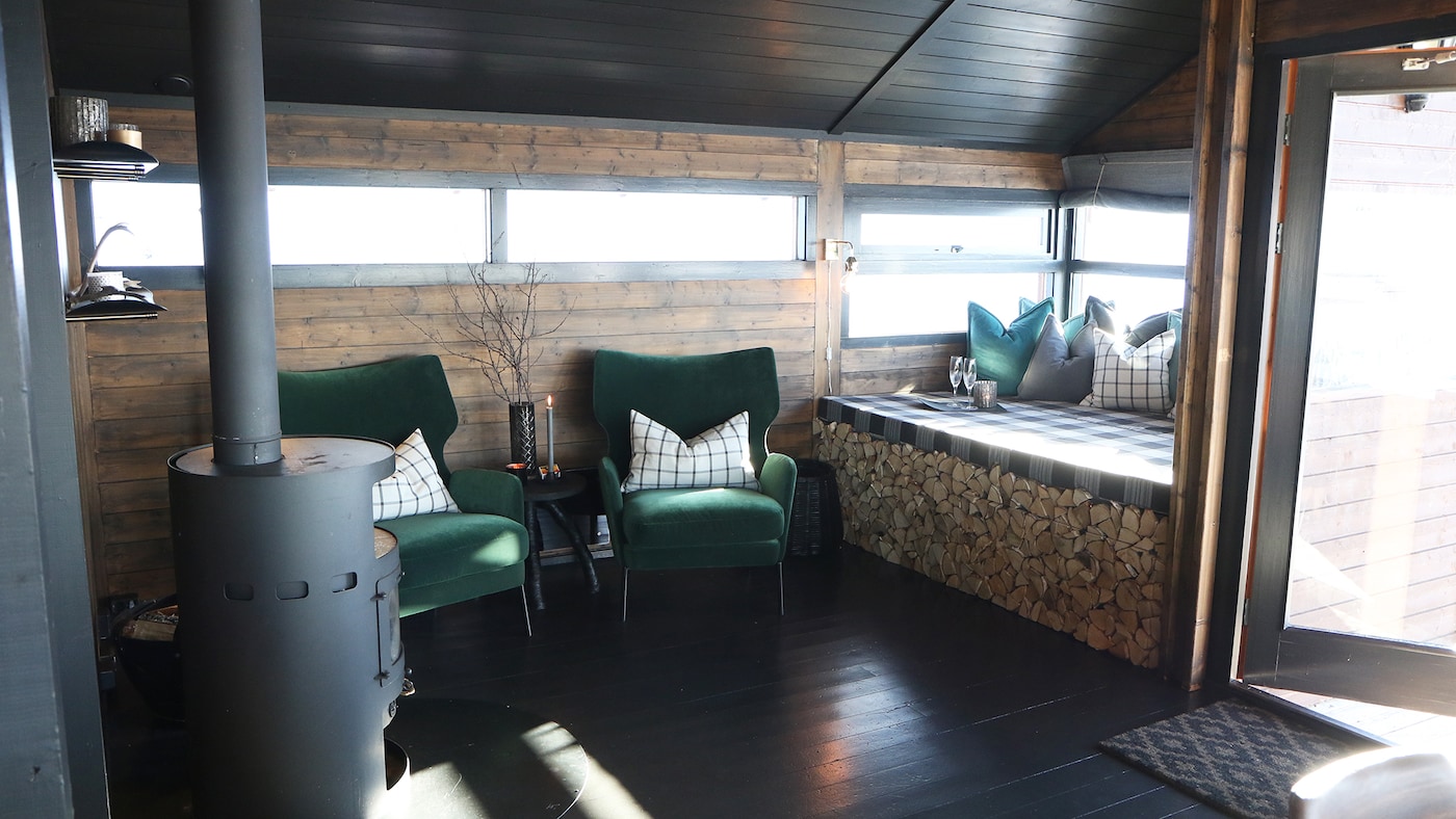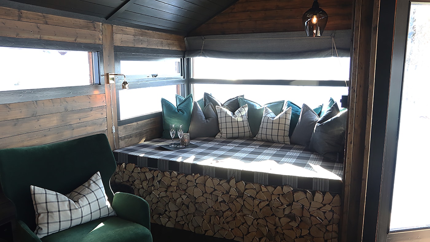 Her kan kan kveldene nytes etter en deilig dag i bakken - og nattens tens gjester kan overnatte her. Daybed er malt med Ambiance Superfinish halvblank i farge Signatur Sort. Det er grunnet med Nordsjö Original Heftgrunn V.