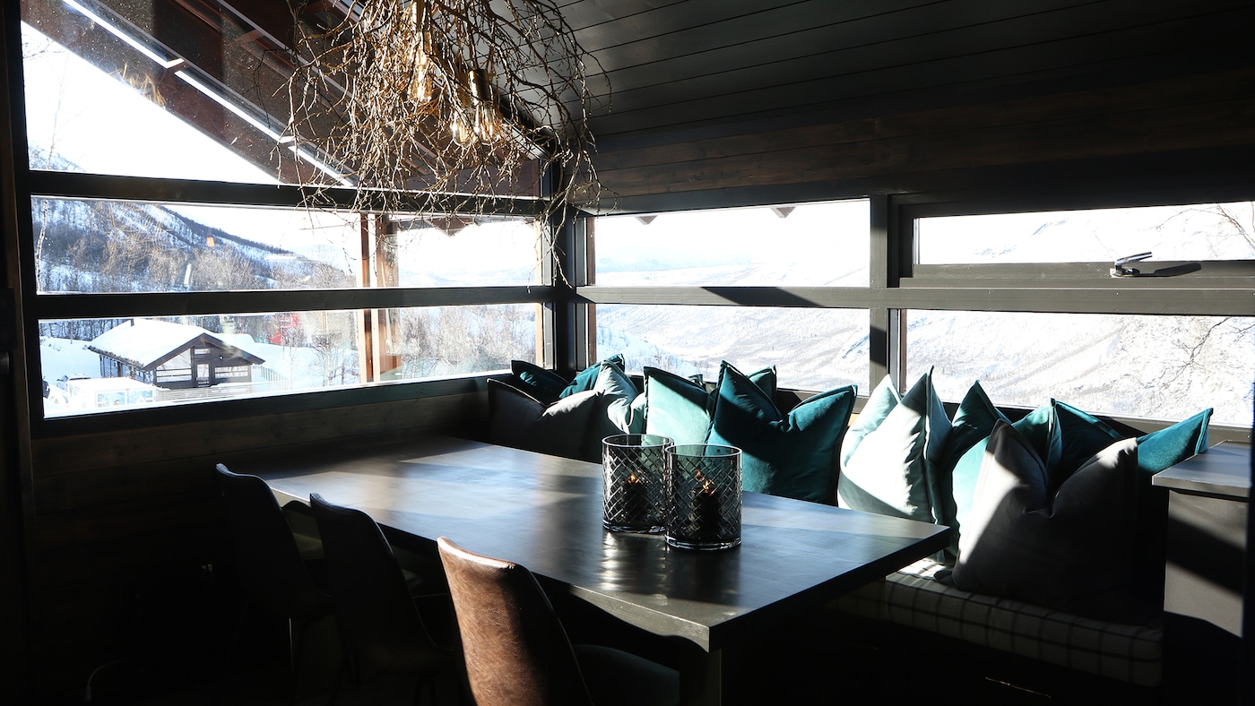 En stram hytte tåler godt litt mer markant fargevalg - og sort er jo alltid lekkert! Mørkbeisede vegger skaper den gode og lune stemningen, og sorte vinduskarmer, stolper og gulv passer perfekt inn i den norske fjellheimen. Tilfør messing-ben under spisebordet og du får en dekadent stil på fjellet!