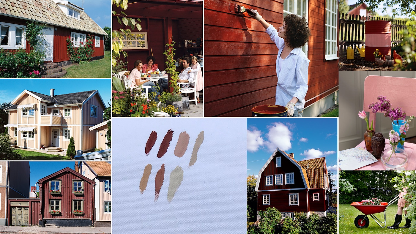 Det røde huset med hvite detaljer, et hvitmalt gjerde og en vidtende flaggstang er en klassisk symbol for hele landet. Se vår vakre klassiske røde og den rødinspirerte gulrøde paletten og finn din favoritt.