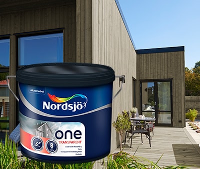 Vår One Transparent beis finnes i mange fine farger. I tillegg er den pigmentert for å gi best beskyttelse til din trefasade samtidig som den gir treet struktur synlighet på en vakker måte. En annen fordel med Nordsjö One Transparent er at den gir en god beskyttelsen mot tøffe værforhold.