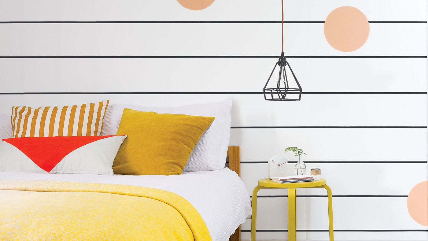 Enten du velger lekne sirkler eller geometriske firkanter, handler det om å være spontan og ubekymret, så ikke tenk for mye på hva som skal hvor. Følg penselen, eksperimenter og ha det moro! Trenger du inspirasjon for å komme i gang? Se instruksjonsvideoen vår for å se hvordan du lager sirkler på veggene.