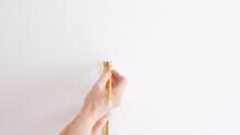Bruk målebånd og blyant til å tegne opp to parallelle, stiplede linjer med jevne mellomrom langs hele veggen der du vil ha den utviskede streken.