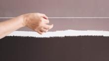 Mens malingen fremdeles er våt, fjerner du maskeringsteipen og bruker en liten, tørr malerpensel til å viske ut den øverste og nederste kanten på feltet med våt maling. Den utviskede streken er ferdig!
